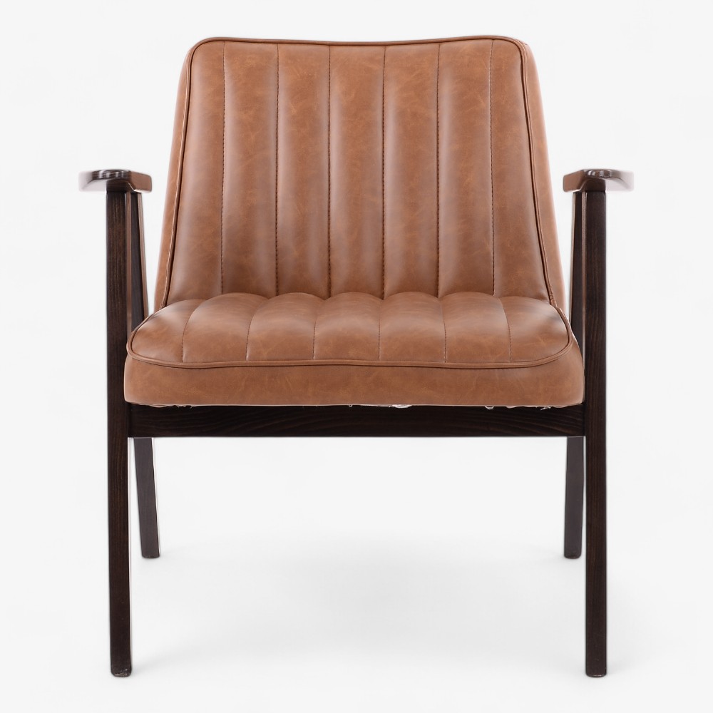 Πολυθρόνα vintage με δερμάτινη επένδυση και ξύλινο σκελετό
