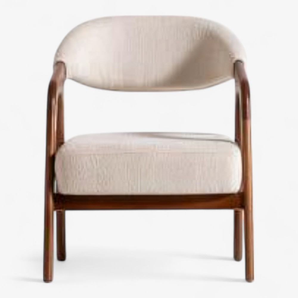 Η SOHO ARMCHAIR προσφέρει αυξημένη άνεση χάρη στα ενσωματωμένα μπράτσα και τον εργονομικό της σχεδιασμό. Με σκελετό σε απόχρωση καρυδιάς και ουδέτερη επένδυση, συνδυάζει κομψότητα και λειτουργικότητα – ιδανική για τραπεζαρίες, γραφεία ή lounge ξενοδοχείων.