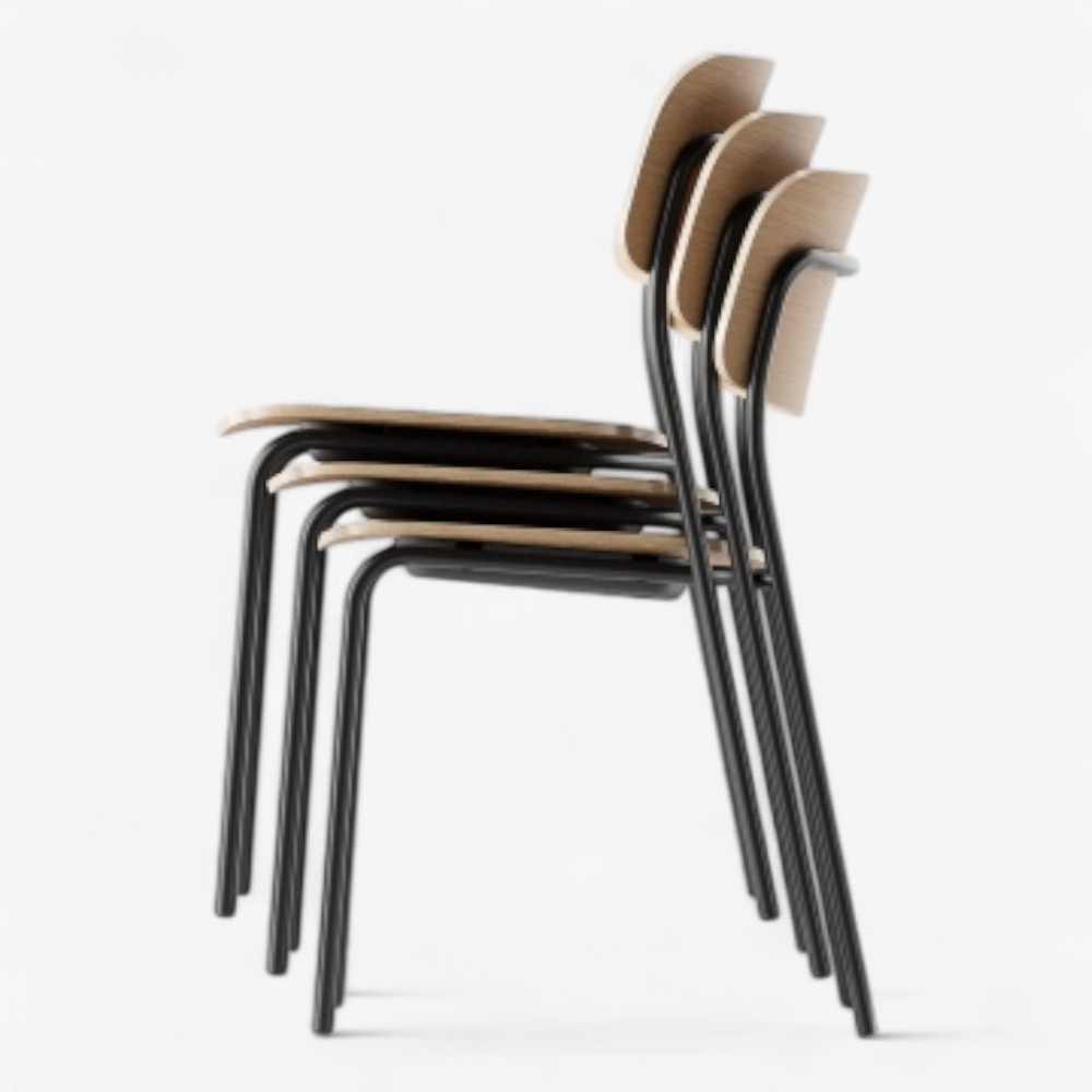 Η DAILY 1 είναι μια πρακτική καρέκλα με ρετρό επιρροές, που συνδυάζει μεταλλικό σκελετό με κυρτό κόντρα πλακέ δρυός. Κατασκευασμένη για αντοχή σε χώρους υψηλής χρήσης, προσφέρει μια στοιβαζόμενη και ευέλικτη επαγγελματική λύση.