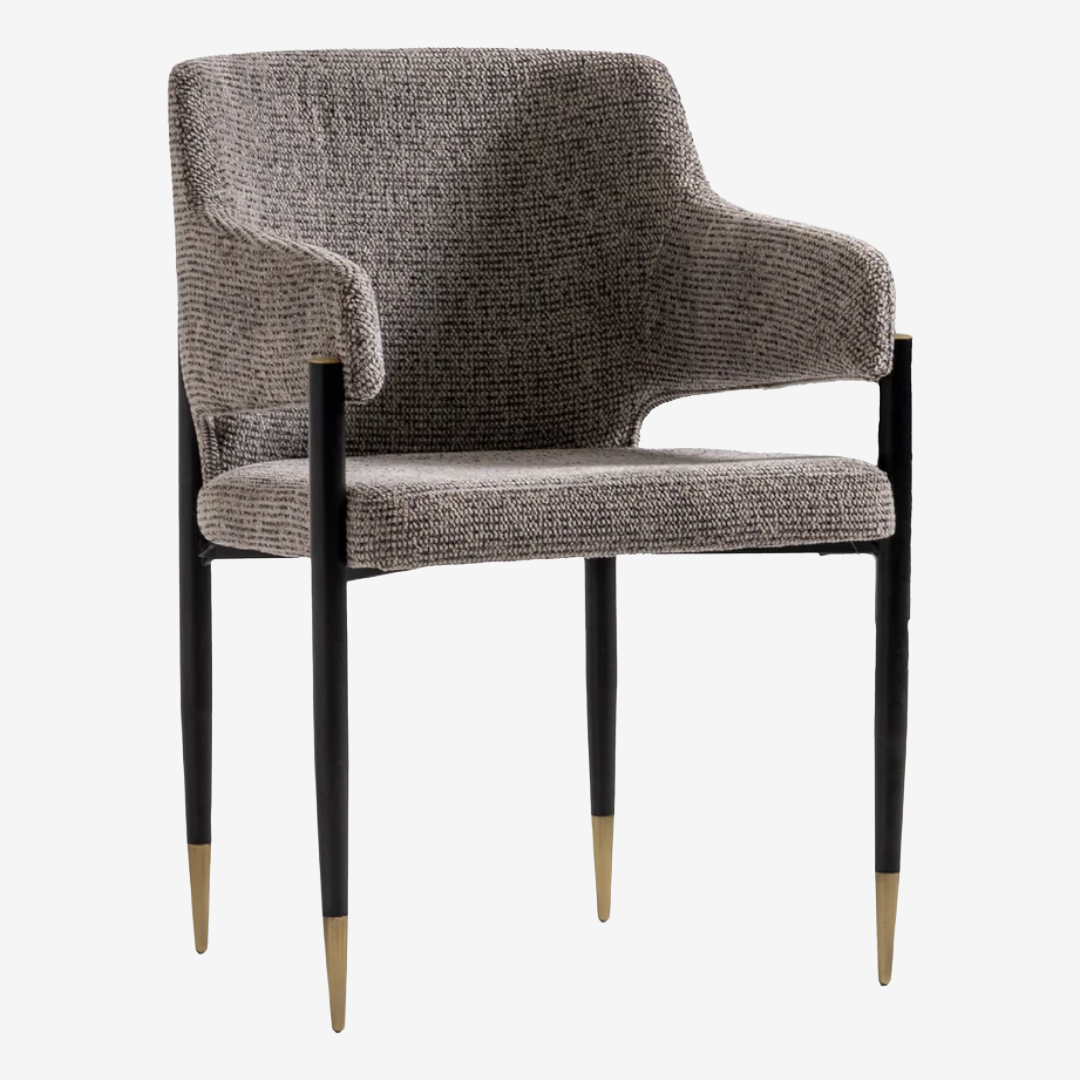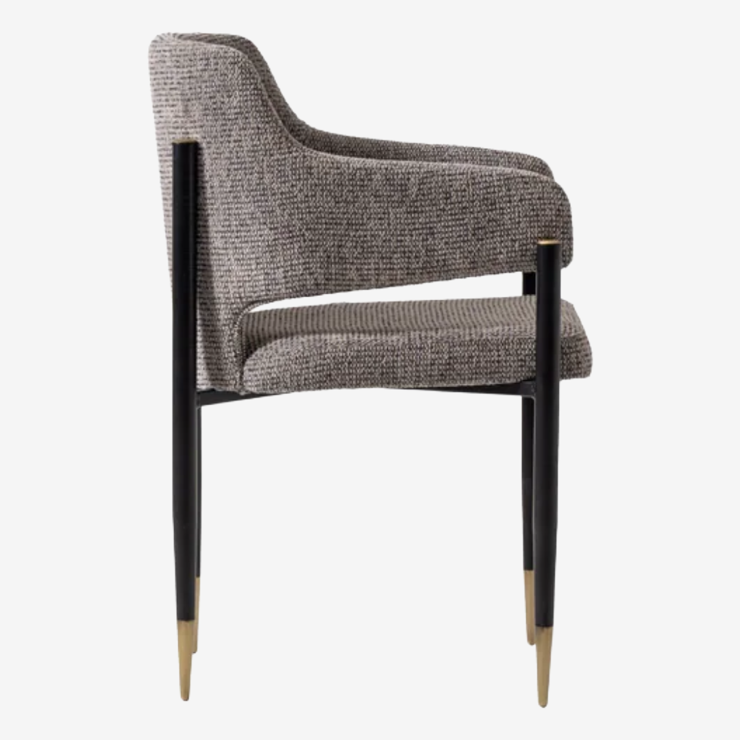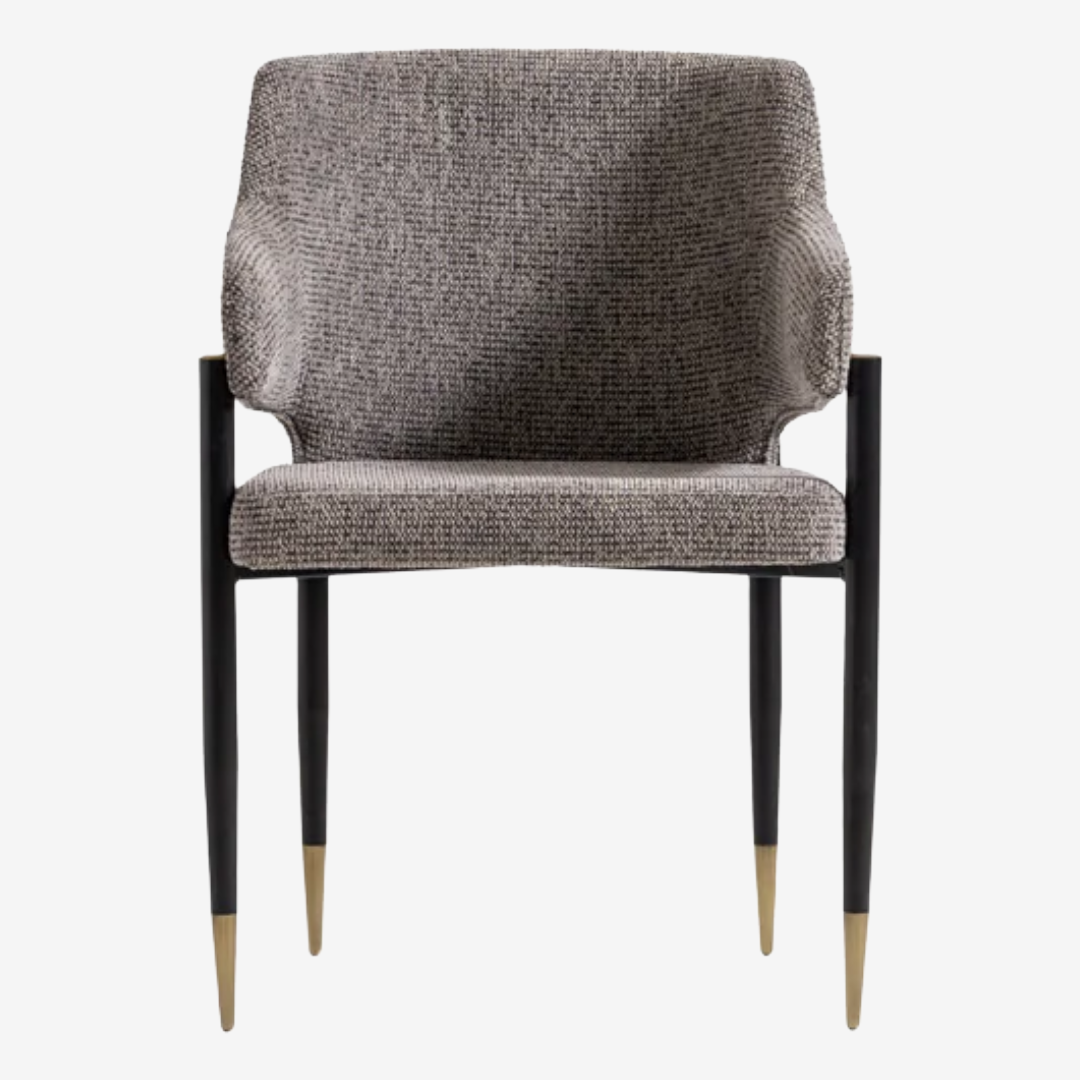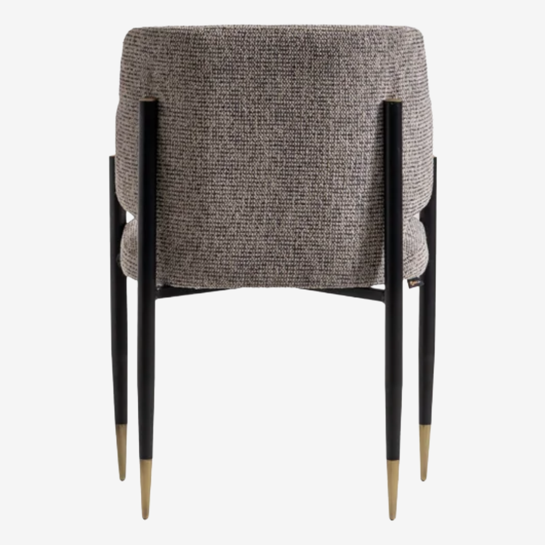 Η καρέκλα Giuliette συνδυάζει μοντέρνα κομψότητα με διαχρονική φινέτσα. Με ψηλή, διακριτικά καμπυλωτή πλάτη και γλυπτά μπράτσα, προσφέρει εντυπωσιακή άνεση χωρίς να θυσιάζει το στιλ. Τα μαύρα λεπτά πόδια με ορειχάλκινες λεπτομέρειες ενισχύουν τη αίσθηση πολυτέλειας, καθιστώντας την ιδανική για κομψούς χώρους τραπεζαρίας, executive lounges και διαχρονικά interior designs.