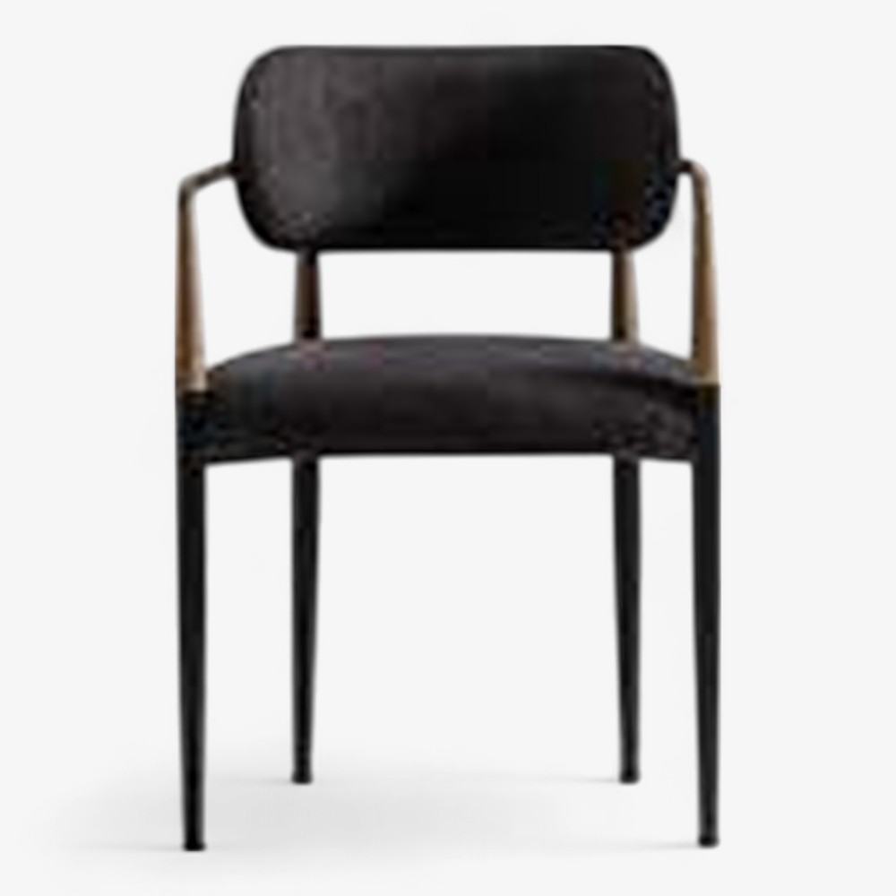 Η καρέκλα STRAP εκφράζει τον σύγχρονο μινιμαλισμό με κομψές, πολυτελείς λεπτομέρειες. Με λεπτό μεταλλικό σκελετό σε μαύρη απόχρωση και κωνικά πόδια, δημιουργεί μια καθαρή και εκλεπτυσμένη σιλουέτα. Το κάθισμα και η πλάτη είναι μαξιλαρωμένα και επενδυμένα με μαύρο ύφασμα ή δερματίνη, προσφέροντας άνεση και στυλ. Οι διακριτικές χρυσές ή μπρούτζινες λεπτομέρειες στα μπράτσα και στο επάνω μέρος των ποδιών προσθέτουν αίσθηση πολυτέλειας. Η STRAP είναι ιδανική για τραπεζαρίες, πολυτελή lounge ή επαγγελματικούς χώρους υψηλής αισθητικής.